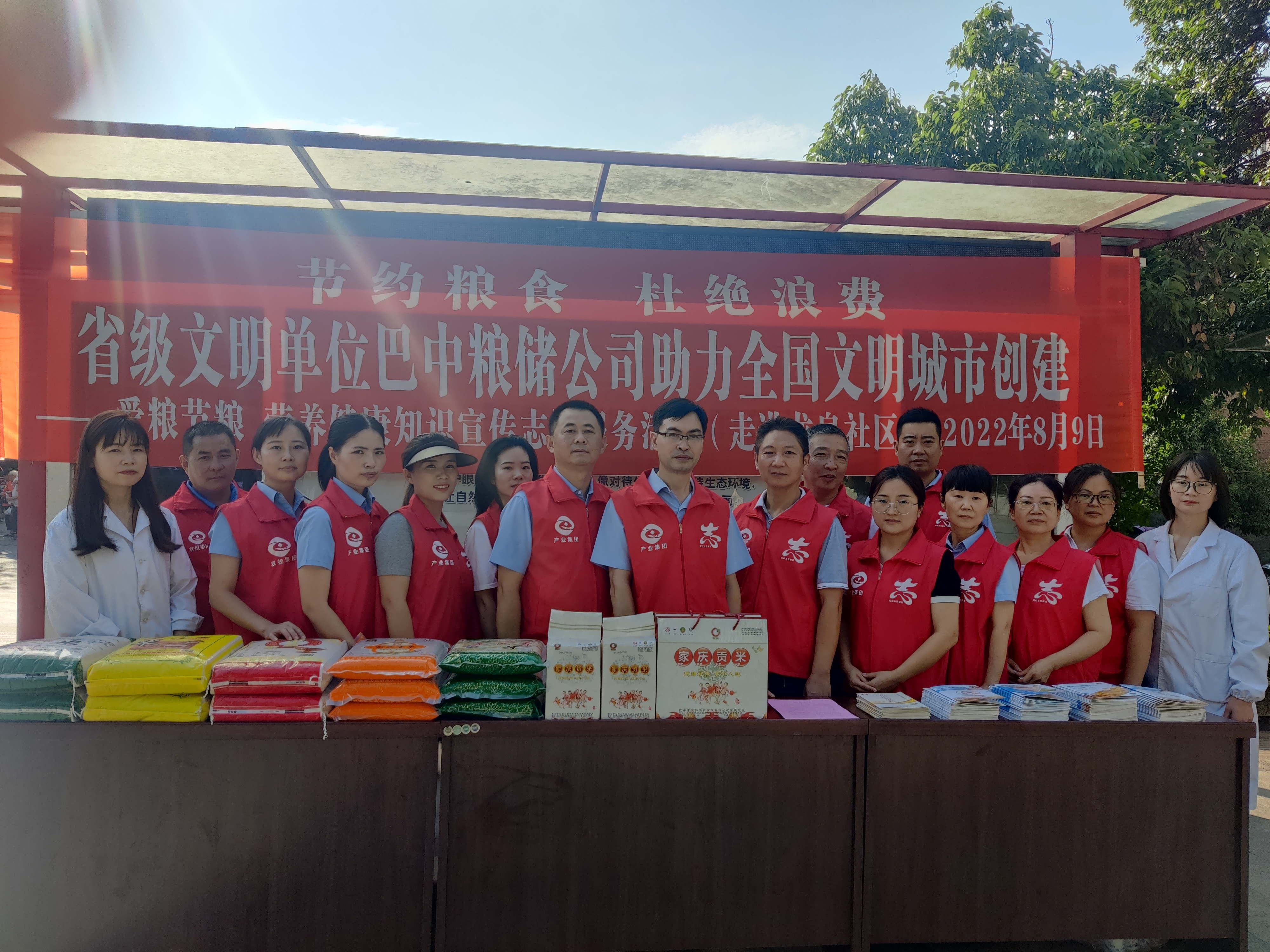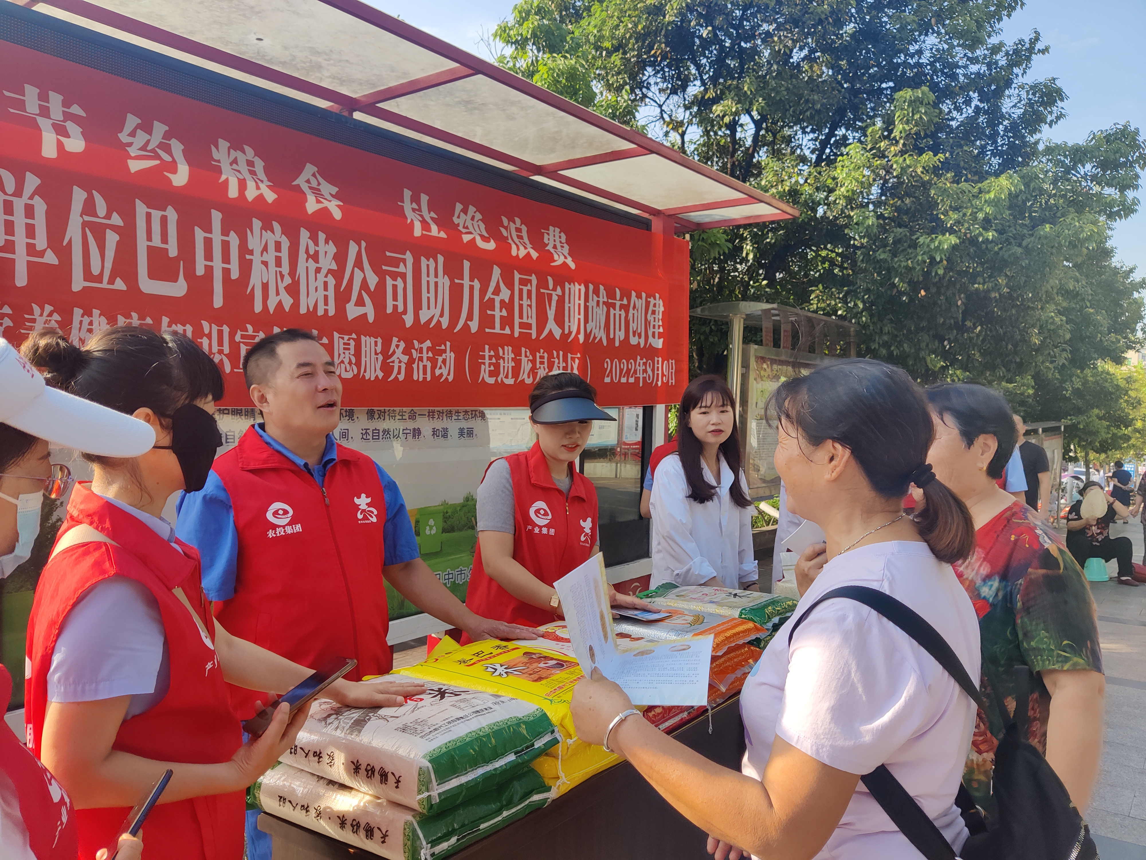 食為政首,糧安天下。為弘揚中華民族勤儉節約傳統美德,深入開(kāi)展愛(ài)糧節糧宣傳教育,助力巴中全國文明城市創(chuàng )建。8月9日,四川巴中國家糧食和物資儲備庫有限公司走進(jìn)巴州區江北街道龍泉社區開(kāi)展“節約糧食·杜絕浪費”志愿服務(wù)活動(dòng)。