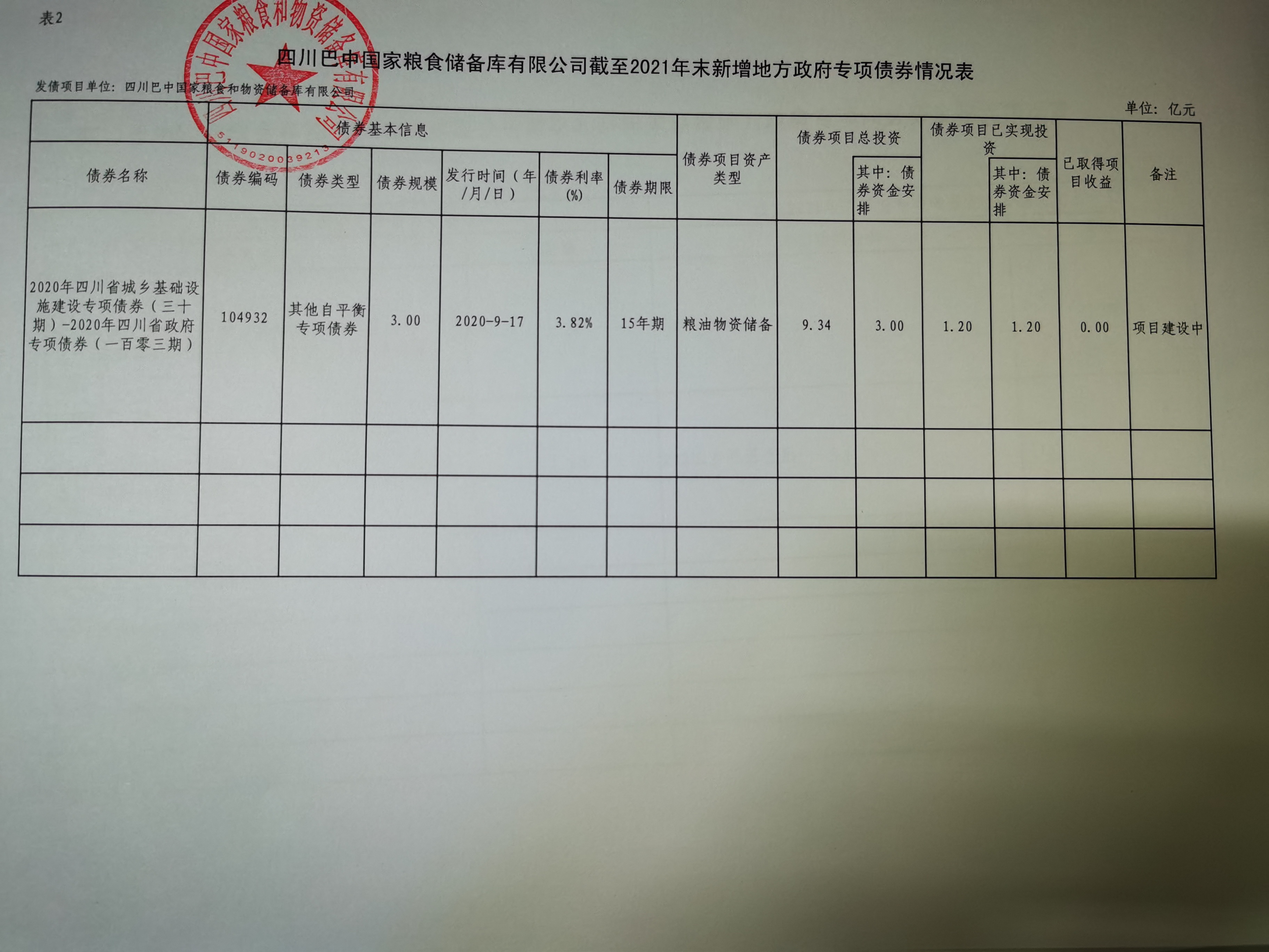 四川巴中國家糧食和物資儲備庫有限公司